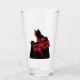 Rote stilisierte Grafik von Batman, der sein Kap mit dem theatralischen Logo von Batman oben hält.