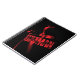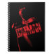Rote stilisierte Grafik von Batman, der sein Kap mit dem theatralischen Logo von Batman oben hält.