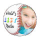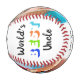 Feiern Sie einen Baseballfan-Onkel mit diesem personalisierten Baseball mit 2 Fotos seiner Nichten und Neffen, ihren Namen und "Der beste Onkel der Welt" in cooler Retro-Schrift.