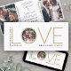Erzählen Sie die freudige Neuigkeiten Ihrer Verlobung und bevorstehende Hochzeit mit einzigartigem Foto Save the Date Einladungen. Die 3 Bilder und alle Formulierungen auf dieser Vorlage sind einfach zu personalisieren. Das magnetische Rücken macht sie für Freunde und Familie leicht zu erkennen. (IMAGE PLACEMENT TIP: Eine einfache Möglichkeit, ein Foto genau so zu zentrieren, wie Sie es gewollt haben, ist es, es einzuschneiden, bevor Sie es auf die Zazzle-Website hochladen.) Das weiße, goldene und schwarze Design zeigt drei Bilder des verlobten Ehepaares, die moderne minimalistische Typografie und das Wort "LIEBE" in Imitaten Goldfolie als Teil des Satzes "das bestste davon ist die Liebe" aus dem Korinthians Bibelverse. Bitte beachten Sie, dass Gold farblich gedruckt ist, nicht metallische Folie. Diese stilvolle Ankündigungskarte ist eine elegante Möglichkeit, Freunde und Familie über Ihre bevorstehende Feier zu informieren. Herzlichen Glückwunsch an die Braut und Bräutigam!