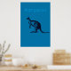 Die Blaue Kangaroo Moderne Wall Kunst mit dem Bild eines Kangaroo in schwarz vor einem farbenfrohen Hintergrund mit dem Wort "Kangaroo". Es sieht ausgezeichnet aus in jedem modernen Wohnzimmerdekor.