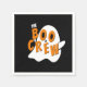 Schwarze Halloween-Servietten mit weißem Geist und orangefarbenem Text "die boo-Crew". Fügen Sie dies in Ihre Halloween-Party-Lieferliste ein. Geeignet für Kinder und Erwachsene.