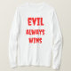 Der langärmelige T - Shirt von Frauen mit dem Titel "Böse gewinnt immer" in rotem Text