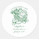 Fügen Sie Ihrem Brautparty eine charmante Touch oder Dekoration mit diesem klassischen Rundaufkleber hinzu! Mit einem handgezeichnet Gemüseeimer und handgeschriebenen Schriften in tiefgrüner Schrift ist es perfekt für ein Bauer- oder Gartenfest. Einfach, skurril und Teil unserer Kollektion "Fresh Off the Market" - gemacht für Braut, die die Schönheit der Liebe unterschätzt haben.