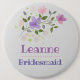 Die Bridesmaid - ein Button-Abzeichen mit dem Namen und einer Blumenillustrierung. Abzeichen zur Identifizierung von Hochzeiten.
