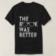 Ein minimalistisches Design mit einem Bücherstapel mit dem Satz "Das Buch war besser" in einem modernen Schriftart. Ideal für Buchliebhaber und begeisterte Leser.