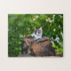 Eine Katze sitzt im grünen Garten neben einem Baumstamm und blickt nach vorn