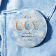 Es ist ein Baby-Duschknopf mit blauen und weißen Herzmustern und niedlichem Schriftart.