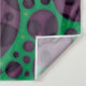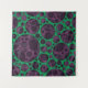 Eine Reihe von lila Kreisen unterschiedlicher Größe überlagert einen lebendigen grünen Hintergrund und erzeugt ein visuell auffälliges Muster. Die kreisförmigen Formen haben verschiedene Farbtöne, die dem Design eine hohe Tiefe und Komplexität verleihen. Illustration Design von trippigen abstrakten lila und grünen Schleifenlöchern. Tags: abstrakt, Punkte, geometrisch, verrückt, grün, lila, halluzinogen, Löcher, psychedelisch, Lava, Trippy, Trypophobie