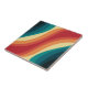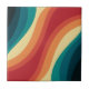 Geometrische geometrische Muster-Abbildung mit mehrfarbigen Retrowellen mit orangefarbenen, roten, beigen, blauen und türkisfarbenen Streifen auf dunkelblauem Hintergrund