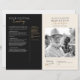 Dieses elegante Memorial-Programmdesign besticht durch ein raffiniertes Schwarz-Creme-Farbschema mit modernen Serif- und handgeschriebenen Script-Schriftart und schafft so eine würdige und gediegene Hommage an einen lieben Menschen. Das Layout verbindet nachdenkliche Typografie mit Raum für personalisierte Überschriften, individuelle Bestätigungen und Schwarz-Weiß-Fotos und ist somit ideal für eine Feier des Lebens oder für Beerdigungsarbeiten. Die subtilen Goldakzente fügen eine Touch von Raffinesse hinzu, während das strukturierte Format eine organisierte Präsentation von Auszeichnungen, Lesungen und Gedenkveranstaltungen ermöglicht. Diese vollständig bearbeitbare Vorlage bietet eine wunderbare Möglichkeit, ein Leben gut gelebt zu ehren, kombiniert zeitlosen Stil mit sinnvoller Personalisierung für eine unvergessliche Erinnerung.