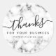 Elegantes, trendiges Geschäft dank der Aufkleber mit weißem Marmor Look Ränder oben und unten. Anpassbarer Text: "Danke für Ihr Unternehmen" mit Ihrem Firmennamen oder URL unten.