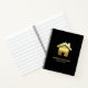 Spiral Notizbuch mit einem einfachen Bild eines Goldenen Gradienten Haus auf einem schwarzen Hintergrund. Elegantes minimalistisches Design.