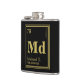 Eine einzigartige kundenspezifische Initialengoldelement-Periodensystemflasche.