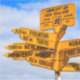 Die Stirling Point-Beschilderung wurde erstmals in c errichtet. 1960. Der ursprüngliche Holzschild hatte sechs Zielklingen, darunter Hunde Island, Ruapuke Island, Wellington, London und der Südpol. Nach dem wiederholten Vandalismus wurde ein Metallpfosten eingezementiert und zwölf Ziellreifen angepasst.