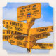 Die Stirling Point-Beschilderung wurde erstmals in c errichtet. 1960. Der ursprüngliche Holzschild hatte sechs Zielklingen, darunter Hunde Island, Ruapuke Island, Wellington, London und der Südpol. Nach dem wiederholten Vandalismus wurde ein Metallpfosten eingezementiert und zwölf Ziellreifen angepasst.