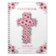 Schönes rosa Blume Kreuz für Ihre Erste Heilige Kommunion. Die Einrichtung besteht aus schönen und hübschen, rosafarbenen Blume und grünem Blattwerk. Personalisierte Vorlage für ein einzigartiges und ganz besonderes Gästebuch.