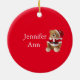 Feiern Sie mit diesem wunderschönen Keramik-Ornament ein neues Weihnachtsfest. Große Fläche zum Foto. Personalisieren Sie das Jahr und den Namen des Babys auf der Rückseite. Mit niedlichen Teddybären angereichert. Red Panel für Text. Es ist ein großartiges Geschenk, um Ihr neues Kind, Ihr Enkelkind oder andere geliebte zu feiern.
