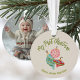 Geschlechtsneutrales Baby's erste Weihnachtsschmuck anpassbar Keepake mit Foto auf der Rückseite. Erstellt aus einer Vintagen inspirierten handgezeichneten Aquarellschmuck Weihnachtsschmuck. Originelle Kunst von Leslie Larson.