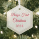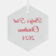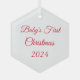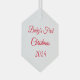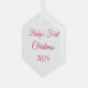 Dieses Weihnachtsschmuck wird in der sechseckigen Form mit Text gezeigt: Erste Weihnachtsnacht des Babys und Datum in roter Farbe. Mattierte Rückseite Farbe Weiß Passen Sie dieses Objekt an oder kaufen Sie, wie es ist.