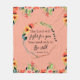 Der Lord kämpft für Sie in der schwarzen Typografie umgeben mit einem BlumenKranz. Dieser Vers ist vom Exodus-14:14. Der Hintergrund ist eine Lachsrosafarbe, aber Sie können sie zu Ihrer ausgesuchten Farbe ändern, indem Sie auf dem besonders anfertigen Knopf klicken. Er würde ein wunderbares aufmunterndes Geschenk machen! Sehen Sie unser Geschäft für mehr in dieser Sammlung. Der Lord hat uns dieses Versprechen gegeben, also können wir noch sein. Es tut nicht gemein, dass wir inaktiv sind, gerade das wir Erholung mehr in ihm, betet, ließ seinen Frieden in unser Herz durchsickern und auf seinen Schlachtplan hören!