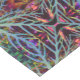 Das farbenfrohe Originalmuster auf diesem Tischläufer wurde aus einem Originalfoto eines Blattes auf einer Pflanze der Korallen, manchmal Korallenpalme genannt, gemacht. Im näheren Foto können andere Blätter und andere Pflanze hinter dem Hauptblatt gesehen werden. Die Farben sind sanfte tropische Pastelltöne, Blues, Aquas, Lavendel, Rosa, Gelb und Grüntöne. Die komplizierten Formen der Blätter heben sich vor dem dunklen Hintergrund ab.