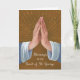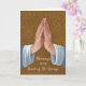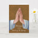 Ehre das Fest des hl. Georgs mit dieser aussagekräftigen Karte, die Segen des Glaubens und des Mutes anbietet. Das Design zeichnet sich durch ehrfürchtige betende Hände in der Mitte aus, beleuchtet durch strahlendes Licht. Ein brauner Hintergrund mit einer subtilen Textur verleiht Wärme und Tiefe. Eine wunderbare Art, diesen geliebten Heiligen zu feiern, bekannt für seine standhafte Hingabe und Kraft in Christus.