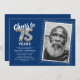 Feiern Sie Ihren besonderen 75. Meilenstein stilvoll mit unseren maßgeschneiderten Einladungen. Diese sind mit einem individuell anpassbaren blauen Hintergrund gestaltet, der zu Ihrem gewählten Farbton wechselt und das Wesen des Fotos mit einer besonderen Platzierung einfangen lässt. Ein Peitschen Imitate silber Glitzer und Helium Ballons fügt eine Touch Eleganz hinzu, während die moderne Textvorlage Ihnen erlaubt, Ihren eigenen persönlichen Flair hinzuzufügen. Machen Sie Ihre 75. Geburtstagsfeier mit unseren einzigartigen Einladungen unvergesslich.