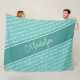 Diese niedliche Fußball-Fleecedecke für Mädchen enthält den Text "Das Fußballfeld ist mein Happy Place" in einem lässigen handgeschriebenen Schriftart, mit , schräg gemusterten Herzformen auf einem aquamarinen Hintergrund - personalisieren Sie ihren Namen auf einem grobkörnigen aquamarinen Farbstreifen mit voller Breite - Hintergrund, Farbstreifen und personalisierte Textfarbe können in JEDE Farbe geändert werden - wählen Sie eine Hintergrundfarbe, die mit dem weißen Textmuster kontrastiert Katz_d_zynes
