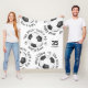 Diese niedliche Fußball-Fleecedecke mit 5 zufällig arrangierten Fußbällen mit dem Text "Das Fußballfeld ist mein Happy Place" kombiniert mit niedlichen handgezeichnet Herzformen in schwarzer Umrandung jedes Fußballballs in einem coolen typografischen Schriftart, alles auf weißem Hintergrund - ihr Name und die Jerseynummer sind individuell einstellbar - von katz_d_zynes