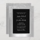 Das Budget ist in einem eleganten Silver Glitzer Foil... Auf einem Hintergrund silberner metallischer Folie bietet unsere elegante Einladung "All in One" zur Hochzeit ein einzigartiges silbernes Glitzer-Ober-Overlay mit Ihrem Einladungstext in einem schwarzen Rahmen mit silberfarbenem Rand. Die Rückseite der Karte enthält alle Details, die Sie normalerweise auf separaten Karten im Hochzeitspaket sehen würden. Diese moderne Hochzeitseinladung wurde so konzipiert, dass sie sowohl elegant als auch preisbewusst ist... ganz zu schweigen von der Zeit rettend. Auf der Rückseite befindet sich auch eine QR-Code-grafische Vorlage, die Sie durch Ihren eigenen Code ersetzen können (oder löschen, wenn Sie nicht vorhaben, einen zu verwenden). Alle Beispieltexte können mit eigenen Informationen über die Personalisierungsvorlage leicht überarbeitet werden. BITTE BEACHTEN SIE: "Budget"-Kartenpapier ist nicht ganz dasselbe wie die herkömmlichen Einladungen mit Flachkarten. Unsere Haushaltskarten sind 4,5 x 5,6 Zoll aus halbglänzendem 110 lb Papier im Vergleich zu herkömmlichen Hochzeitsvordruckkarten mit einem Gewicht von 120 lb. Auch die Budgetkarten sind nicht automatisch mit Umschlägen versehen, wie auch die traditionellen Einladungskarten, aber Sie können sie bei der Kasse auf derselben Seite erwerben, wenn Sie es wünschen. Das alles in einem Budget-Design ist auch auf einer traditionellen 12x18 Hochzeitskarte erhältlich.