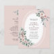 Das Budget Boho Dusty rosa Rose Floral und Eukalyptus Watercolor Greenery Spitz Oval Hochzeitseinladung... Unsere erschwingliche Blumen-Hochzeitseinladung "All in One" mit rosafarbenen Rosen und Eukalyptusgrün auf einem ovalen Rahmen mit weißer Spitze, der Ihren personalisierten Einladungstext zeigt. Die Rückseite der Einladung enthält alle Details, die Sie normalerweise auf separaten Karten im Hochzeitspaket sehen würden. Der Hintergrund vor und hinter der Einladung ist romantisch rot. Diese moderne Vorder- und Hinterzeitseinladung wurde so konzipiert, dass sie sowohl elegant als auch preisbewusst ist... ganz zu schweigen von der Zeit rettend. Alle Beispieltexte können mit eigenen Informationen über die Personalisierungsvorlage leicht überarbeitet werden.