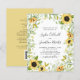Das Preis-Leistungs-Verhältnis in einer Sonnenblumen und Foliage Hochzeit Einladung... Unsere erschwingliche Hochzeitseinladung "All in One" mit Blumen und Grün bietet eine raffinierte Anordnung von gelben Sonnenblumen und zartem grünem Blattwerk, das an Ihren personalisierten Hochzeitseinladungstext grenzt. Die Rückseite der Einladung enthält alle Details, die Sie normalerweise auf separaten Karten im Hochzeitspaket sehen würden. Diese moderne Hochzeitseinladung wurde so konzipiert, dass sie sowohl elegant als auch preisbewusst ist... ganz zu schweigen von der Zeit rettend. Auf der Rückseite befindet sich auch eine QR-Code-grafische Vorlage, die Sie durch Ihren eigenen Code ersetzen können (oder löschen, wenn Sie nicht vorhaben, einen zu verwenden). Alle Beispieltexte können mit eigenen Informationen über die Personalisierungsvorlage leicht überarbeitet werden.