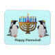 Grafische Illustration von Pinguinen, die den Urlaub von Chanukah durch das Licht der Menorah feiern. Gute Geschenkidee für eine der acht Nächte!