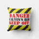 Ursprüngliche Spaßgraphik scherzt Zeichenkissen für Jungen. Vervollkommnen Sie für ein Bau angeredetes Jungenschlafzimmer, besonders wenn Sie einen Raum teilen. Liest Gefahrencalvins Bett behalten weg. Grafik entworfen von Sarah Trett.