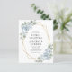 Budget Alles in einem QR Code Dusty Blue Floral Gold geometrische Rahmen Hochzeitseinladung... Unsere erschwingliche "Vorder- und Rückseite" Blumen-Hochzeitseinladung mit Blumensträußen aus staubblauen Blumen auf einem goldgeometrischen Rahmen, der an Ihren personalisierten Einladungstext grenzt. Die Rückseite der Einladung enthält alle Details, die Sie normalerweise auf separaten Karten innerhalb des Hochzeitspakets sehen würden, inklusive dem QR-Code für Ihre Hochzeitswebsite - den Sie direkt auf Zazzles Personalisierungsvorlage erstellen können. Dieser moderne Stil wurde in einer Einladung zur Hochzeit konzipiert, um sowohl elegant und preisbewusst.. als auch zeitgemäß retten. Alle Beispieltexte auf beiden Seiten lassen sich einfach mit eigenen Informationen auf der Personalisierungsvorlage überarbeiten.