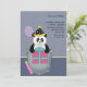 Einem entzückenden Panda wird herein eine Tasche verstaut und vorbereitet für ein Party. Geburtstagshut, Ballone, ein Geschenk und ein Kerzen-Set die Szene. Die Karte ist einfach, mit Ihrer Benennung, Schriftart, Schriftartfarbe und Wahl von sechs Papiersorten besonders anzufertigen.