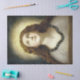 Dieses Design zeigt ein Gemälde von Francesco Ribalta (1565-1628), der ein spanischer Maler der Barockzeit war, hauptsächlich von religiösen Subjekten. Es zeigt eine treue junge Frau, die nach oben, vielleicht in Richtung Himmel, schaut, als Zeichen ihrer Hingabe. Die Frau hat lange fließende brünette Haare und milchig weiße Haut. Es gibt eine goldene Aurole, wie ein Halo, um ihren Kopf. Es ist ein schönes Bild von weiblicher Schönheit und religiöser Frömmigkeit. Der ursprüngliche spanische Titel des Gemäldes ist "El Alma Bienaventurada", was "Das gesegnete Soul" bedeutet.