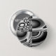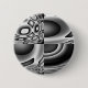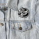 Dieser Knopf weist ein schwarz-weißes Muster auf, das vielen Formen und Formen ähneln kann, aber das ganze Bild sieht aus wie ein böses Gesicht mit dunklen starrenden Augen und einem breiten Grinsen.