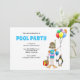 Das Mädchen und der Pinguin sind bereit für das Party. Das Mädchen trägt eine Skubaausrüstung und hält einen Harpune in der rechten Hand, während es die Geburtstagsballons in der links Hand hält. Der Pinguin trägt einen rot-weiß gestreiften Party Hut und hält einen blauen Ballon mit seiner rechten Handinnenfläche.
