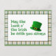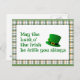Ein leckerer grüner Leprechaun-Hut mit dem Wortlaut "Möge das Glück der Iren immer bei dir sein", Set auf einem grünen irischen karierten Hintergrund. Ideal, um Glückwünsche an Familie und Freunde zu senden.