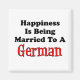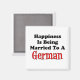 Glück ist einem deutschen niedlichen Magneten Verheiratet. Ein großartiger Magnet für einen deutschen Haushalt. Lass allen, dass der Schlüssel zum Glück darin besteht, einen deutschen Ehemann zu haben. Großartiges, kleines Geschenk für eine deutsche Küche.