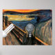 Munch schuf vier Versionen von The Scream, zwei in Farbe und zwei in Pastellfarben, zusätzlich schuf er 1895 einen Lithographenstein der Komposition, aus dem etwa vier Dutzend Drucke gemacht wurden, bevor der Originalstein in Abwesenheit von Munch vom Drucker wiederbelebt wurde. Das Bild wird als von Angst und Unsicherheit umhüllt dargestellt, und diese Emotionen werden oft von den Leuten empfunden, wenn sie einer deutlichen Veränderung ausgesetzt sind. Die einfache Glühbirne war im Grunde das gleiche funktionale Design, das über Jahrzehnte unverändert blieb und dann plötzlich "Fortschritt". Fortschritte in vielen Formen können zu dramatischen Veränderungen führen, und dieses angepasste Bild zeigt auf amüsante Weise die Angst und den Schock des Fortschritts. Ich dachte immer, dass der ursprüngliche verzerrte Kopf mich an eine normale Glühbirne erinnerte und wie plötzlich angenommen wurde, dass sie eine dramatische Neugestaltung benötigte. Das schien mit den Gefühlen von Munch in Krawatte zu gehen, also entschied ich mich, ein Bild zu erstellen, das das reflektiert.