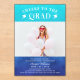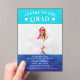Cheers To The Grad Trendy Modern Foto Blue Party Akryllische Einladung zeigt Ihr Lieblings-Abschluss-Foto mit dem weißen Text "Cheers to the Grad" in modernen Kalligraphie-Skript mit einem Graduierungsdeckel mit Ihren individuellen Graduierungsparty Einladung Informationen unten auf einem blau ombre Aquarell Hintergrund. Farbenfroh, modern und einzigartig. Von Evco Studio entworfen www.zazzle.com/store/evcostudio