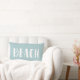 Dieses Kissen mit Meeresfrüchten und weißem Lumbalkissen macht Ihren Zuhause zu einem echten Dekor. Dieses Kissen in Küsten- oder Strandhäusern zeigt das Wort "Strand" auf der Vorderseite und einen koordinierenden Meeresblau und Weiß Wasserstreifen auf der Rückseite.