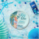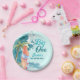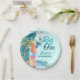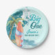 Das große 1. Geburtstag Surfen Retro Strand Party personalisierte Papier Teller. Eine große blaue Welle, Palmen und ein Surfbrett, schöner Sommer, Beach-Geburtstag-Party-Thema.
