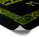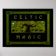 Umgeben von einer Grenze von keltischen Knoten, einem stilisierten, mystischen Wald und Fahrern in den Tönen von Grün.