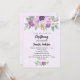 Ein violetter, lavendigerer, wasserfarbener Hintergrund. Die Einrichtung ist mit violetten und lila Blume und Grünpflanzen sowie einem goldenen Kreuz gestaltet. Personalisieren und fügen Sie einen Namen und Empfang Details hinzu.