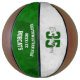 Dieser Sake Basketball ist regulatorisch groß und zeigt die grünen und weißen Farben ihres Teams auf zwei Basketballpanels, auf denen ihr Name und die Jersey-Nummer sowie der Name der Schule, der Maskottenname und die Sportsaison leicht angepasst werden können - die grünen und weißen Basketballfelder haben ein digital gestaltetes Erscheinungsbild - von katz_d_zynes