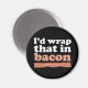 Ich habe das in Bacon Magnet gepackt. Ein Vortrag mit dem Satz "I’d Wrap That in Bacon" in Cooper Black Schriftart über einem knusprigen Baconstreifen. Ein tolles Geschenk für Speckliebhaber und alle, die das in Speck verpacken würden.
